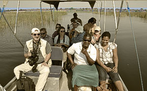 After arriving at the boat station we travel for miles through the channels of the Okavango Delta.